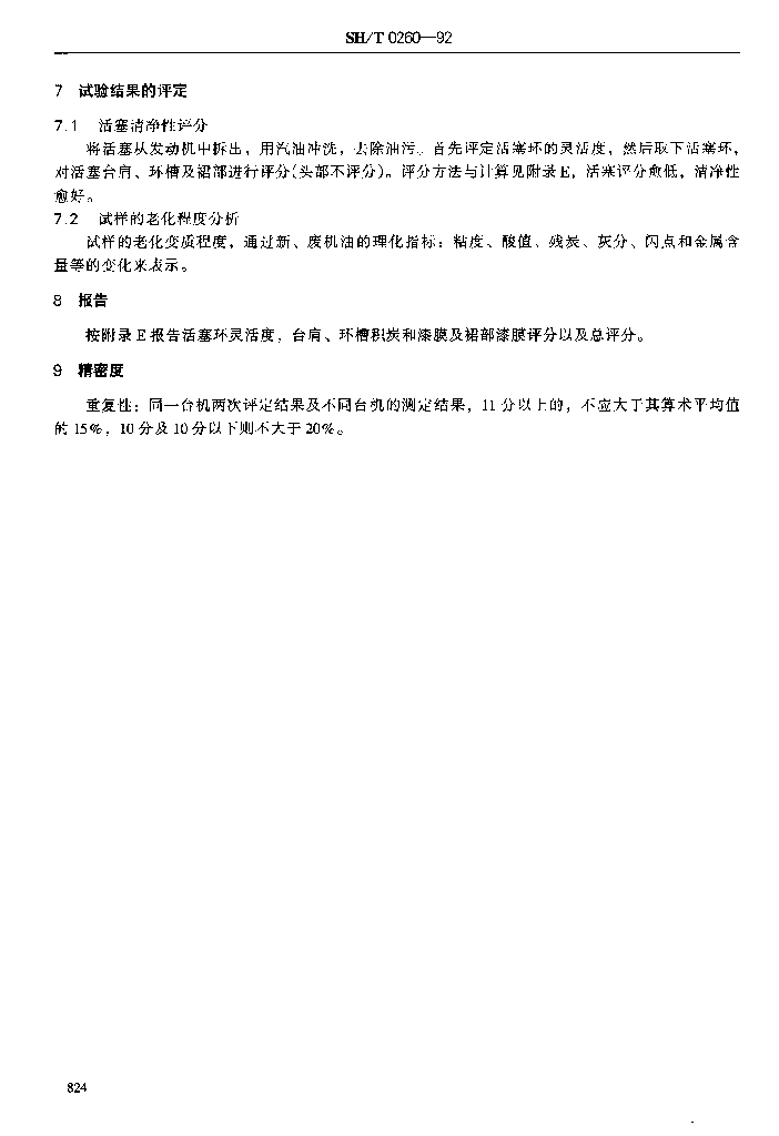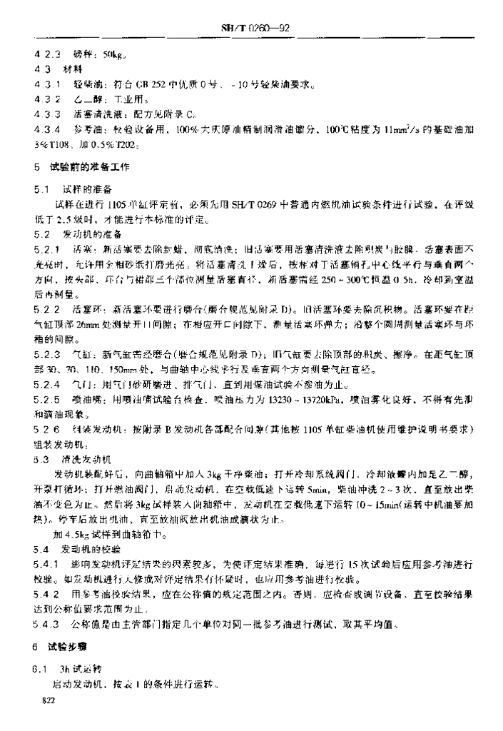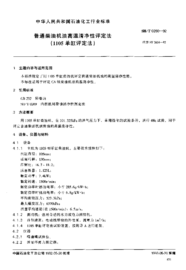 SH/T 0260-1992 普通柴油机油高温清净性评定法(1105单缸评定法)