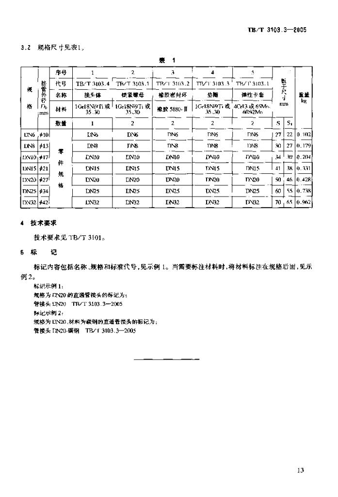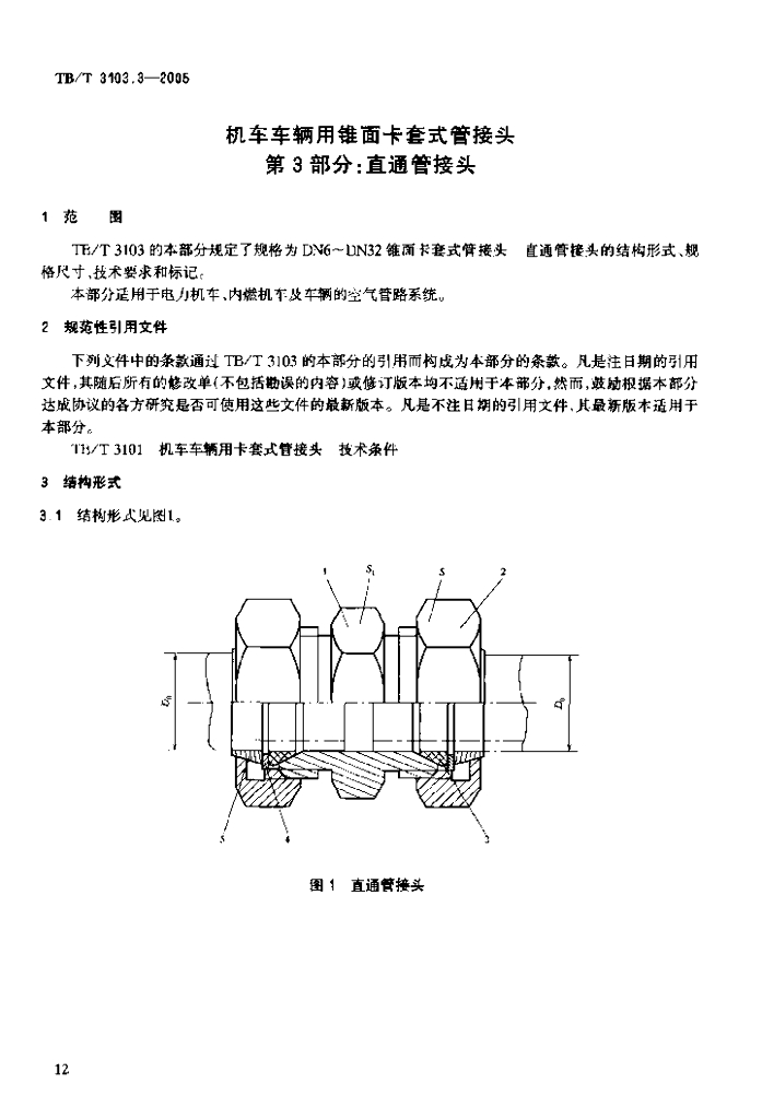 TB/T 3103.3-2005 机车车辆用锥面卡套式管接头 第3部分:直通管接头
