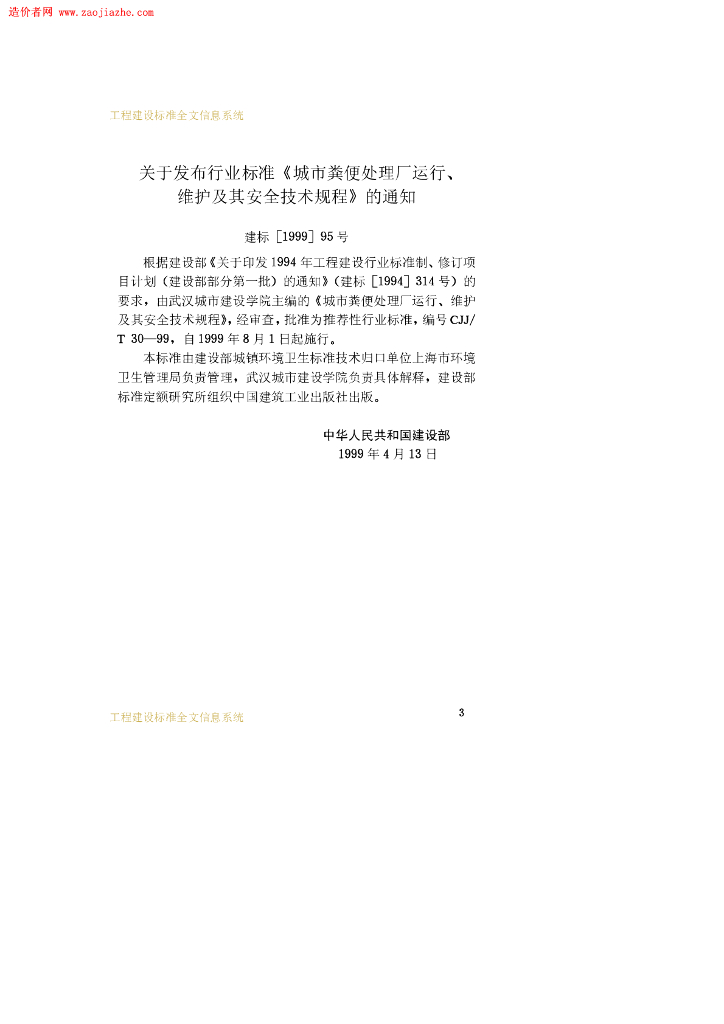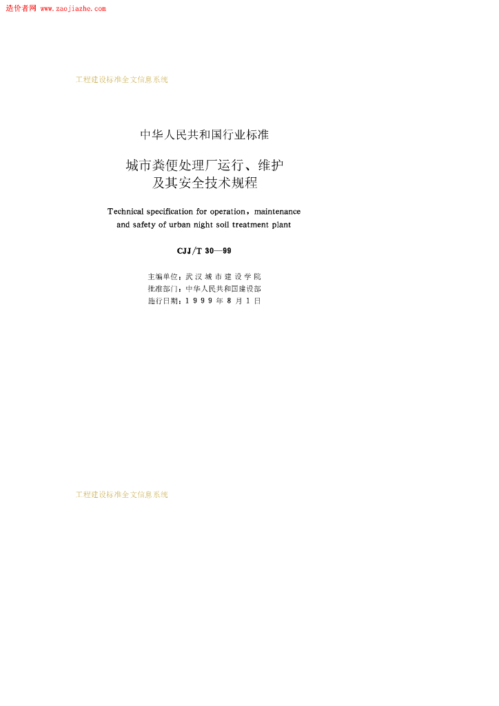 CJJ/T 30-1999 城市粪便处理厂运行、维护及其安全技术规程