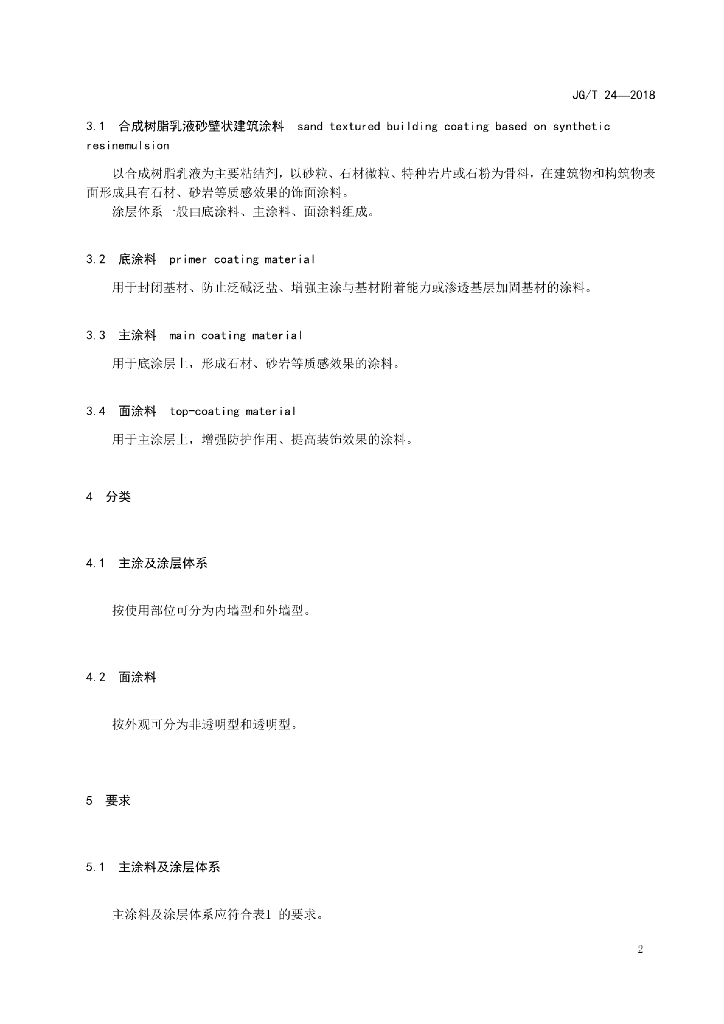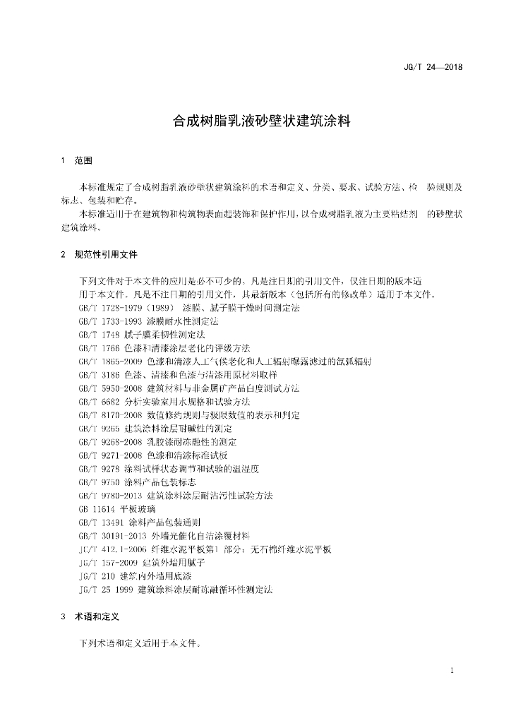 JG/T 24-2018 合成树脂乳液砂壁状建筑涂料
