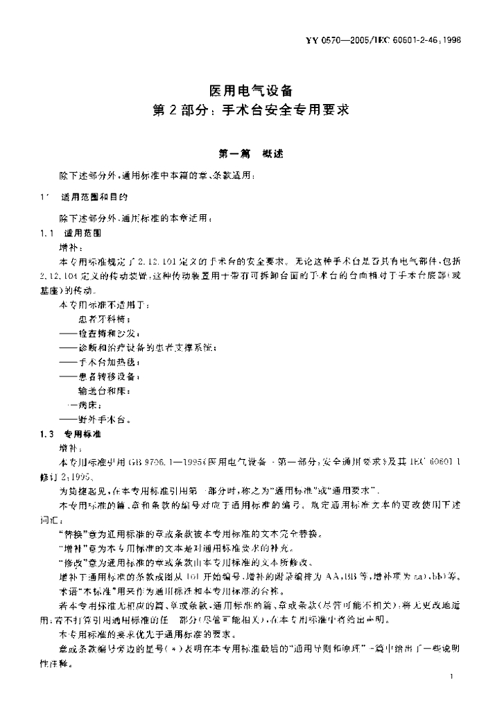 YY 0570-2005 医用电气设备 第2部分 手术台安全专用要求
