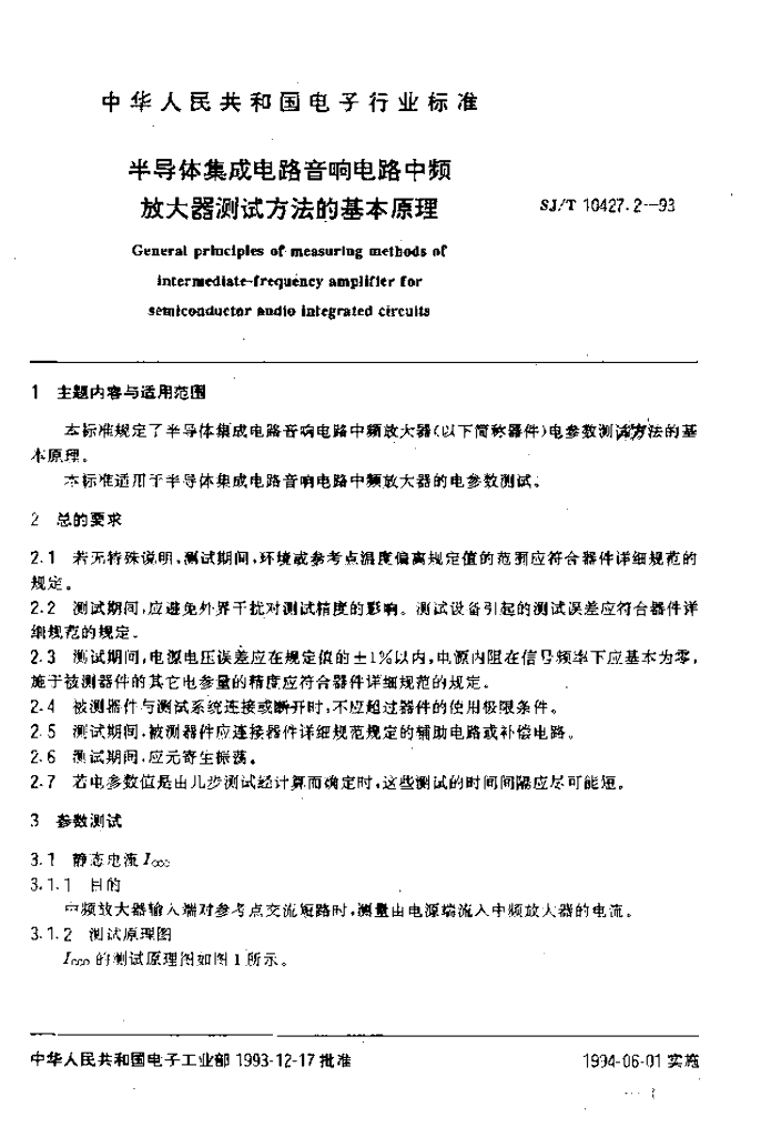 SJ/T 10427.2-1993 半导体集成电路音响电路中频放大器测试方法的基本原理