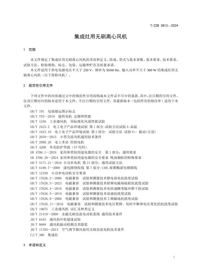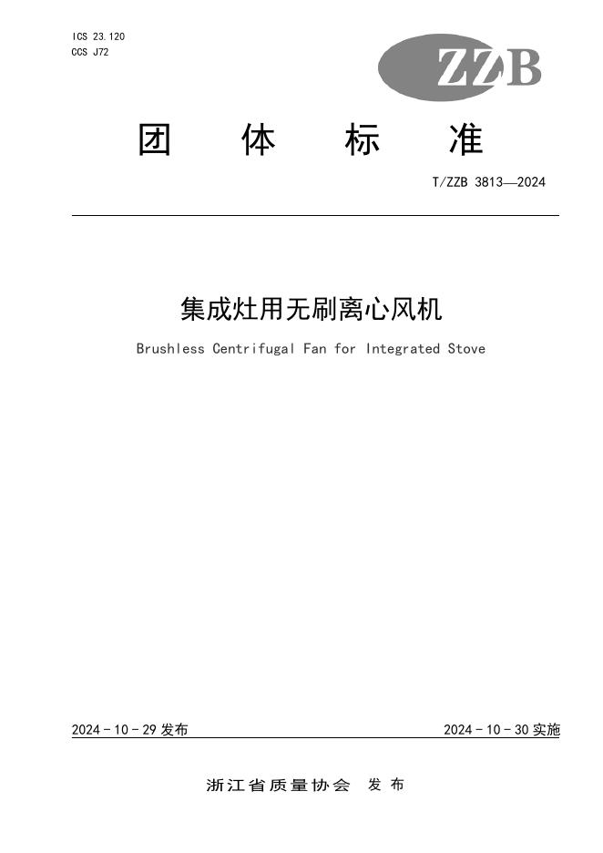 T/ZZB 3813-2024 集成灶用无刷离心风机