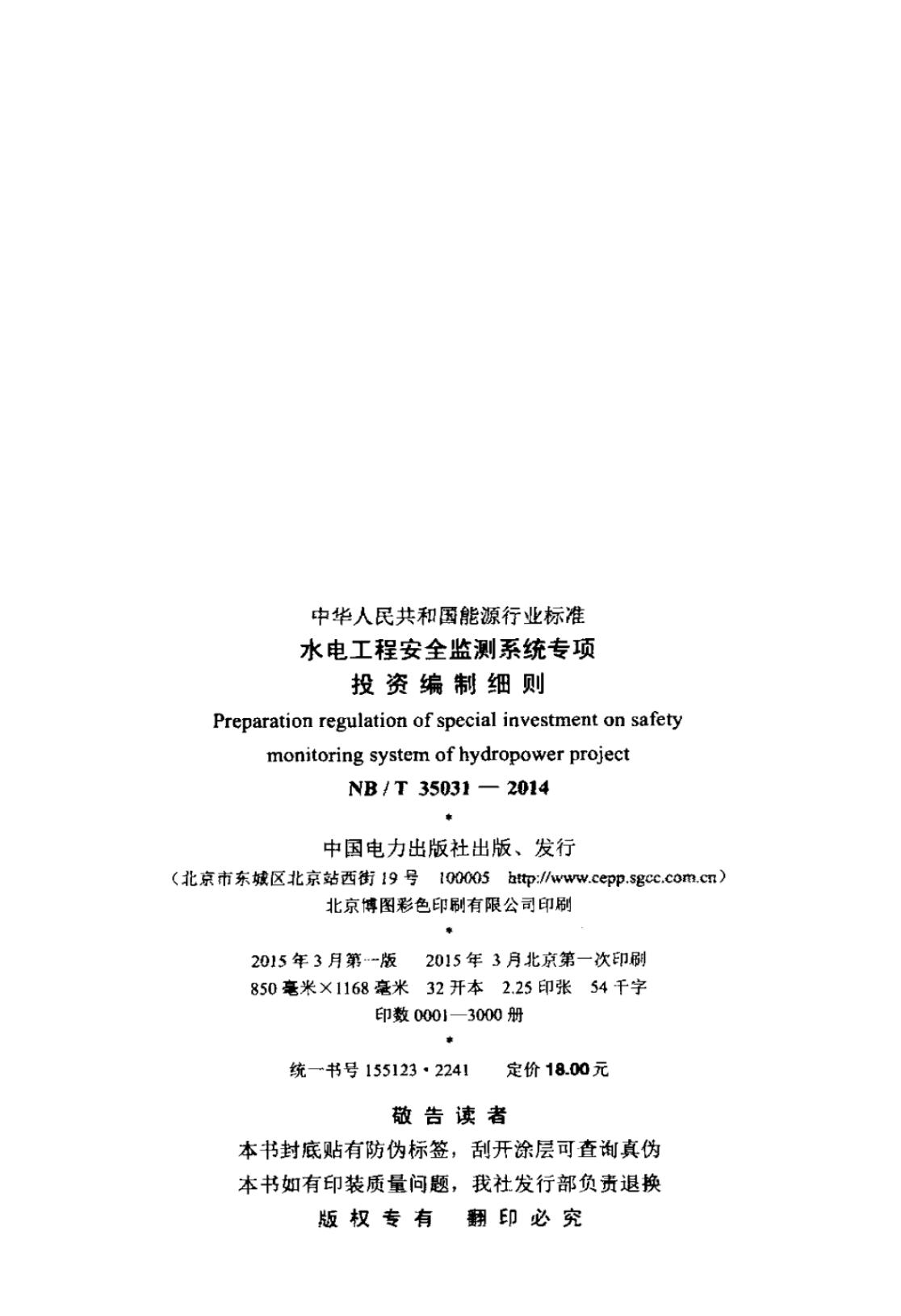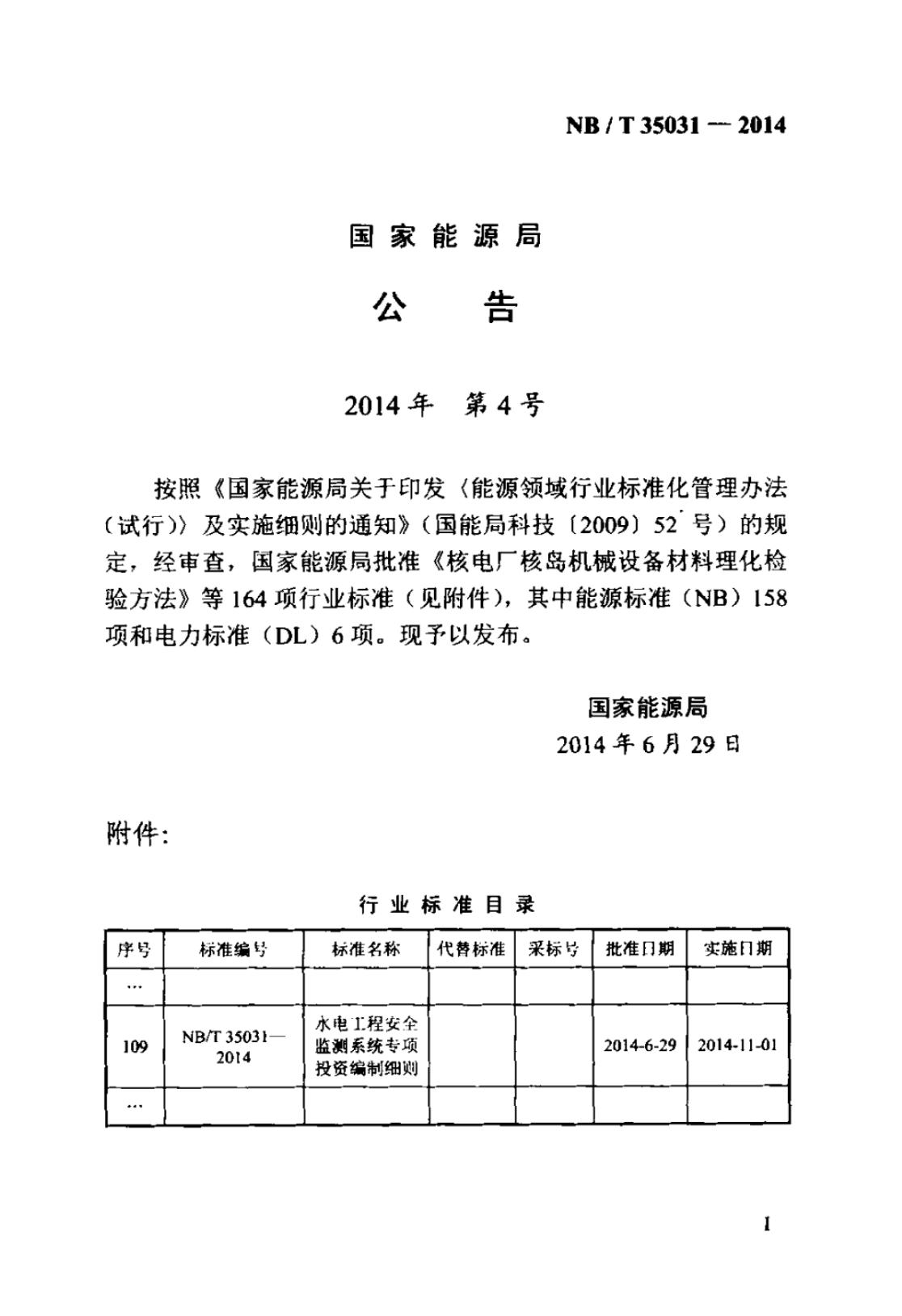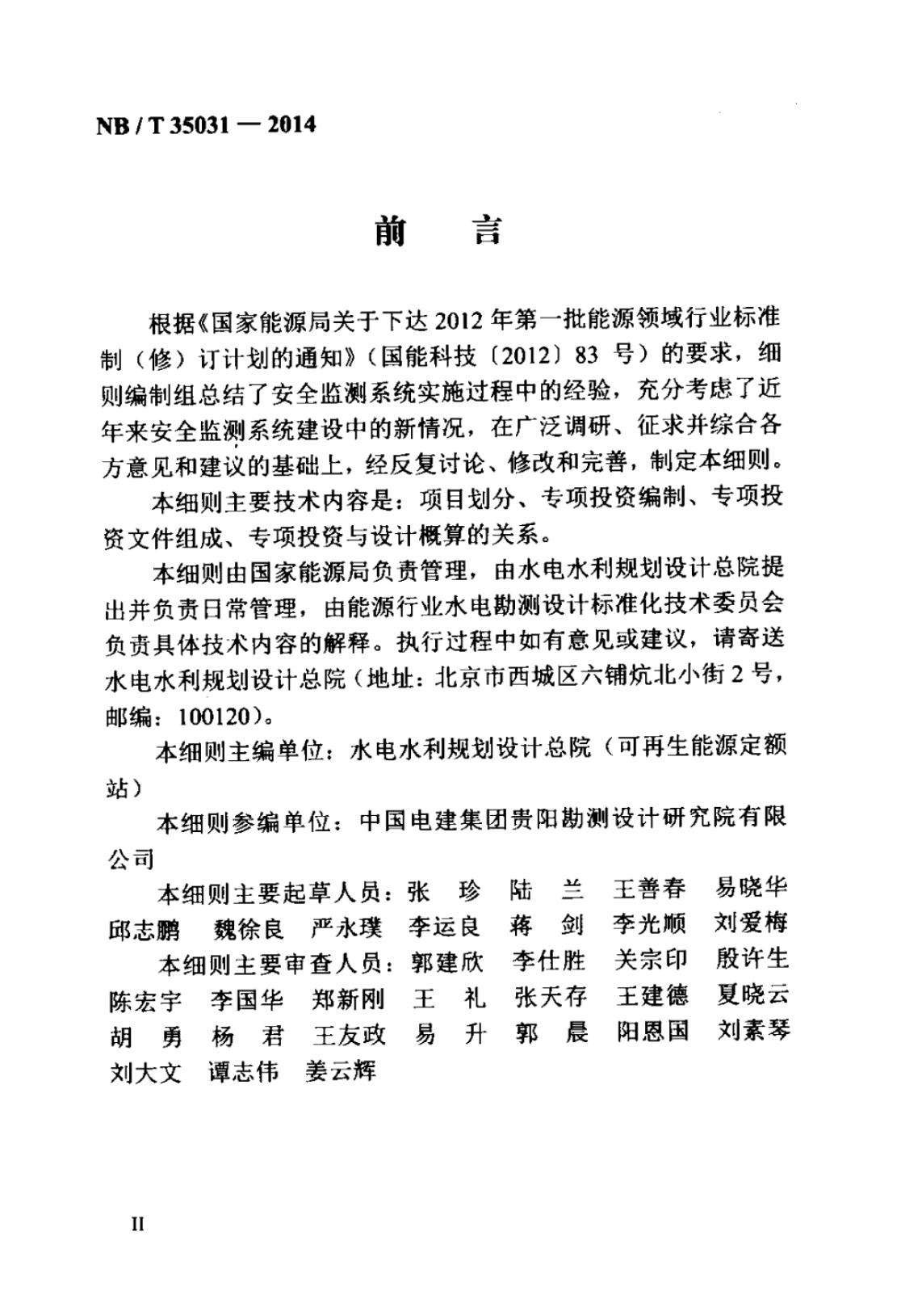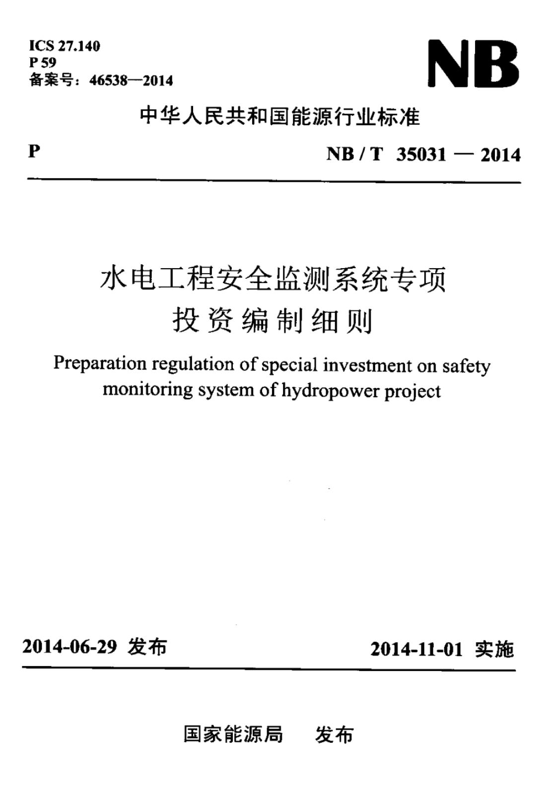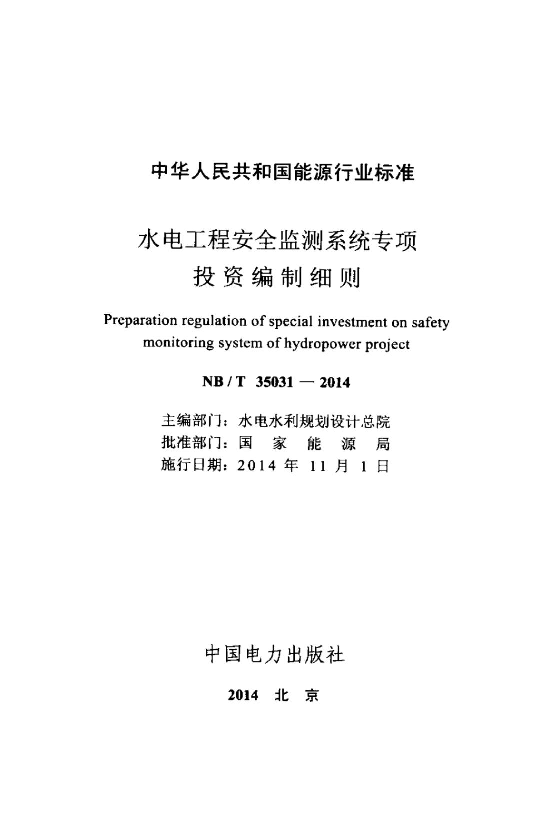 NB/T 35031-2014 水电工程安全监测系统专项投资编制细则