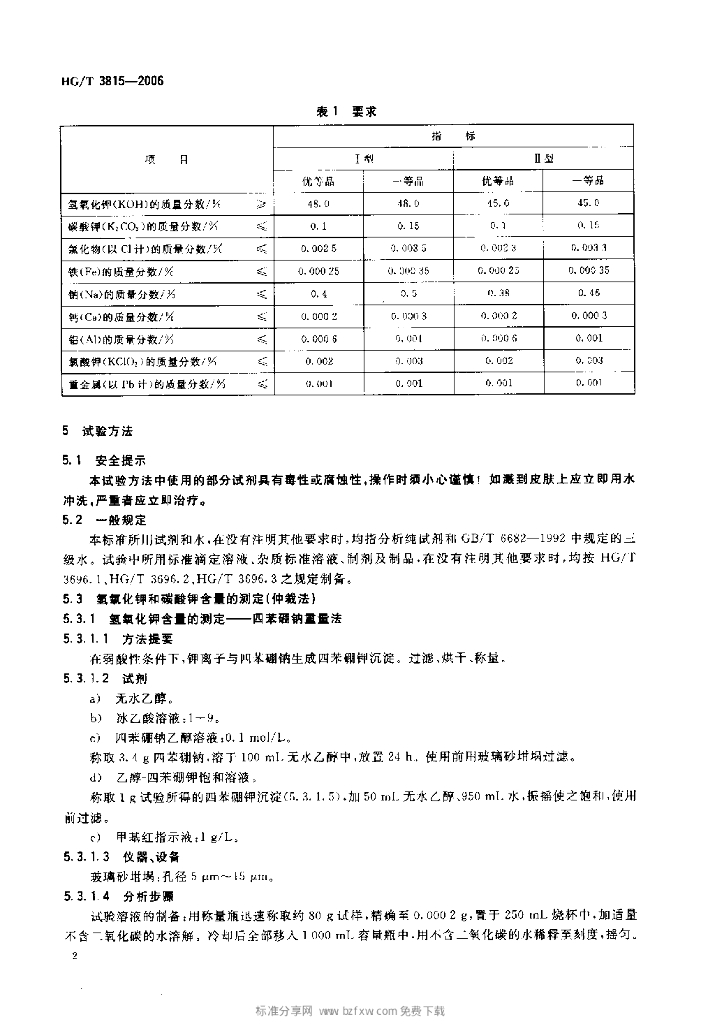 HG/T 3815-2006 工业离子膜法氢氧化钾溶液