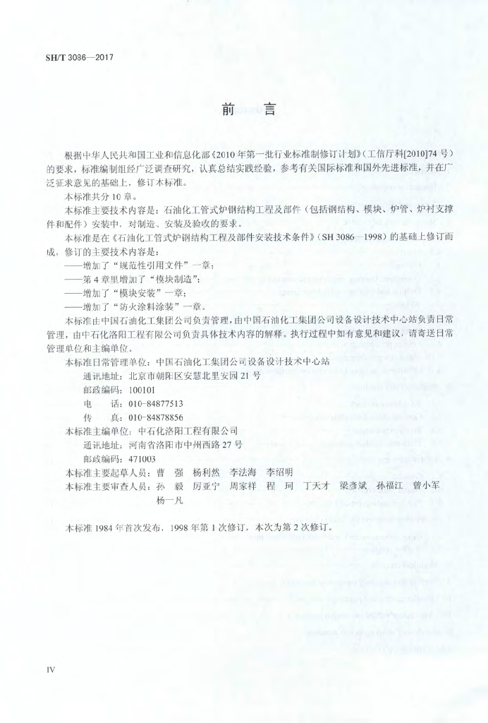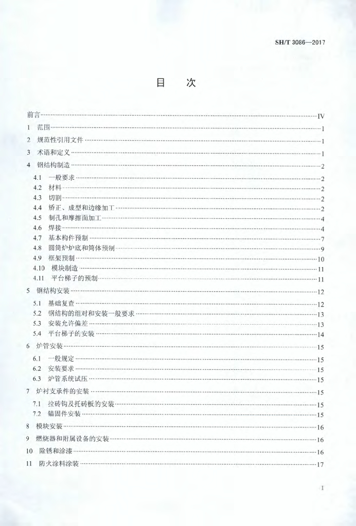SH/T 3086-2017 石油化工管式炉钢结构工程及部件安装技术条件