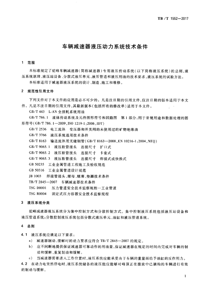 TB/T 1552-2017 车辆减速器液压动力系统技术条件