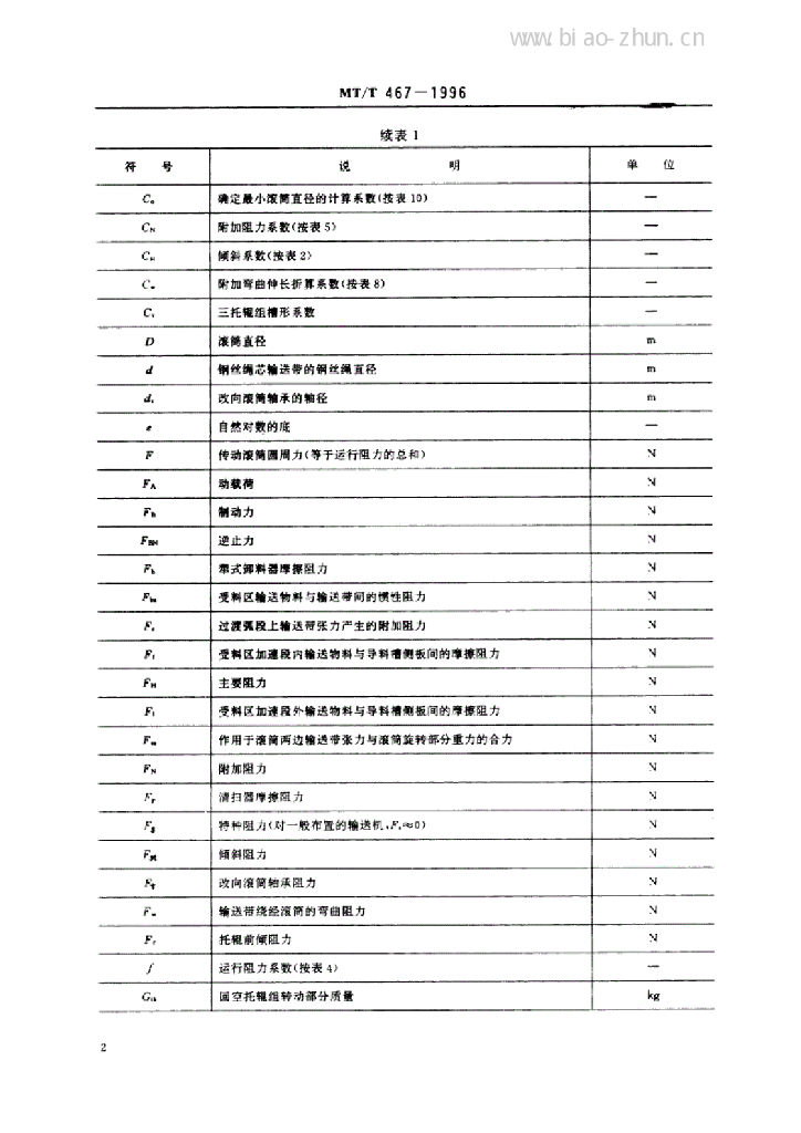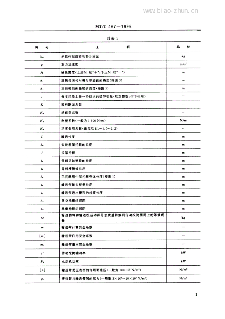 MT/T 467-1996 煤矿用带式输送机设计计算