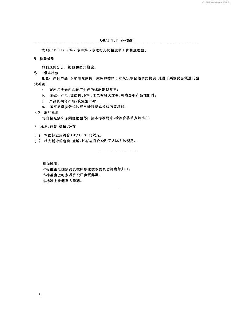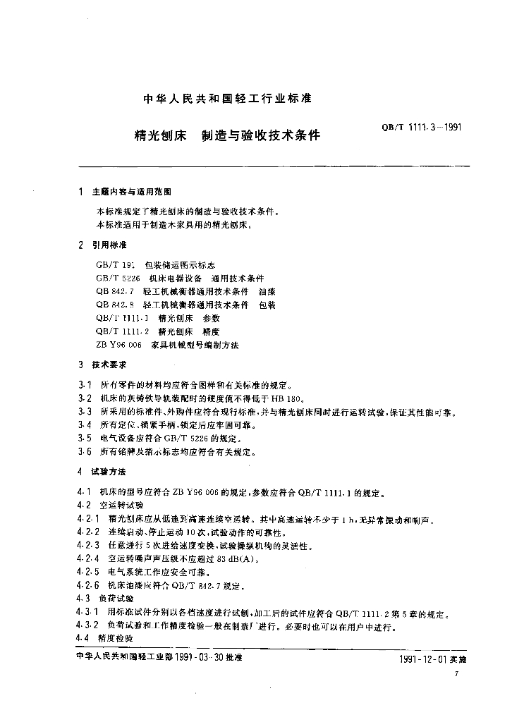 QB/T 1111.3-1991 精光刨床制造与验收技术条件