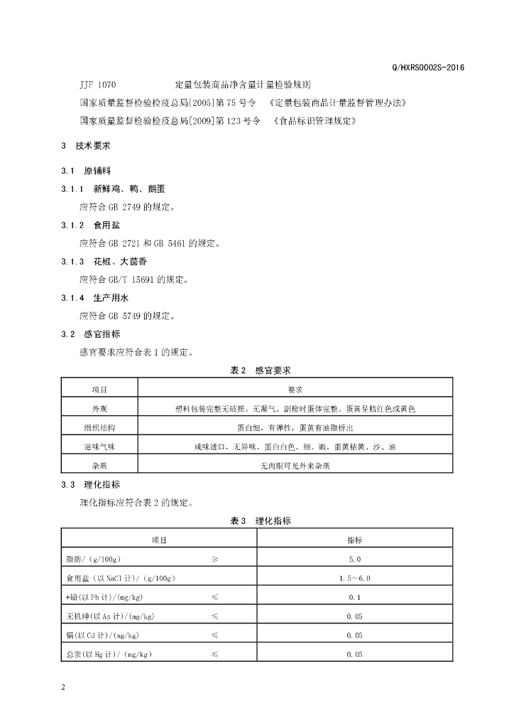 Q/HXRS 0002S-2016 河南旭瑞食品有限公司 熟咸蛋