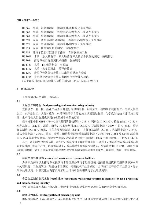 GB 46817-2025 食品加工制造业水污染物排放标准