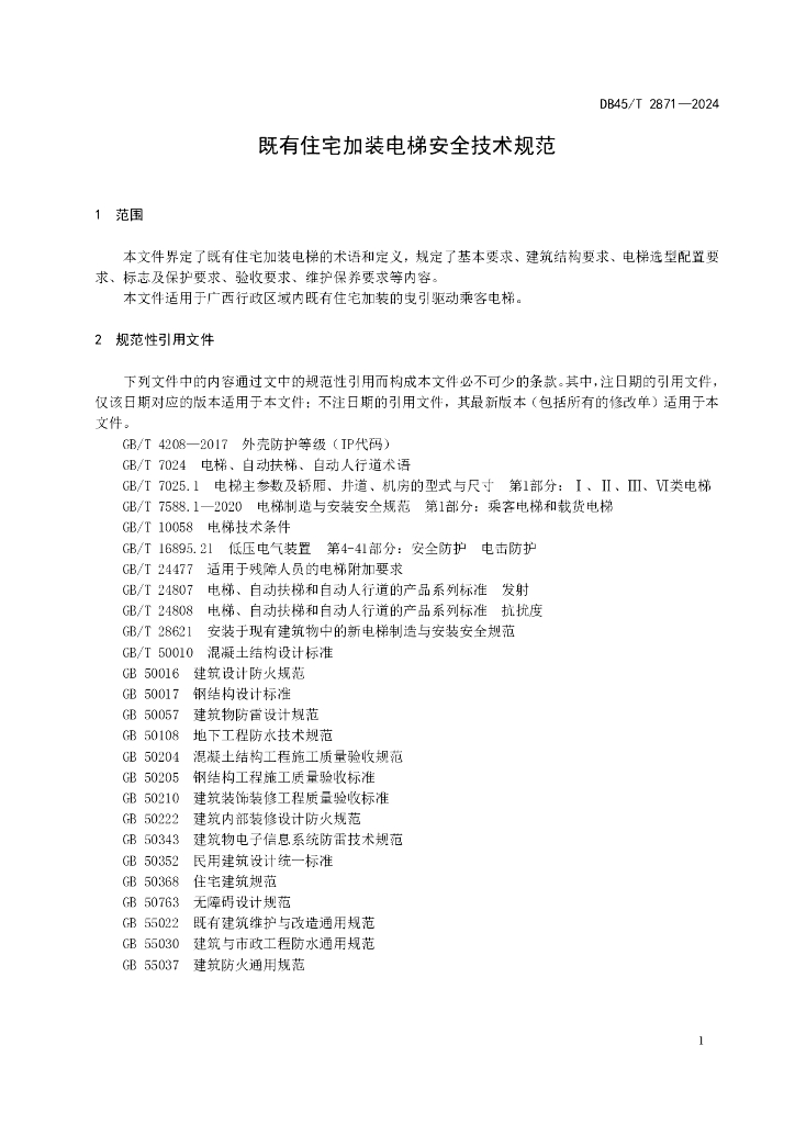 DB45/T 2871-2024 既有住宅加装电梯安全技术规范