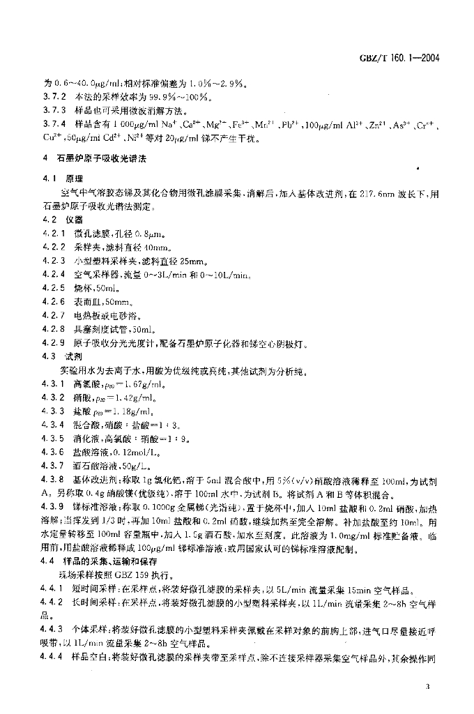 GBZ/T 160.1-2004 工作场所空气有毒物质测定 锑及其化合物