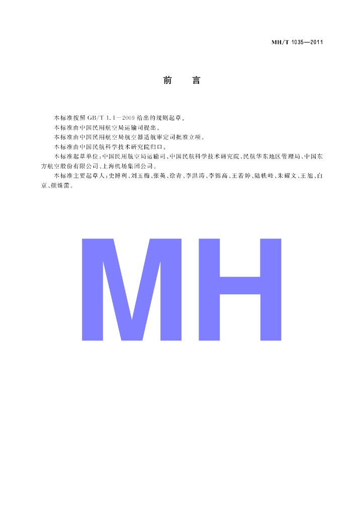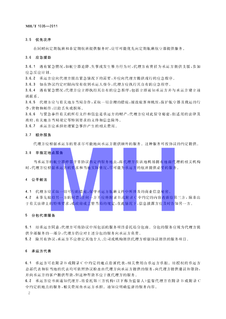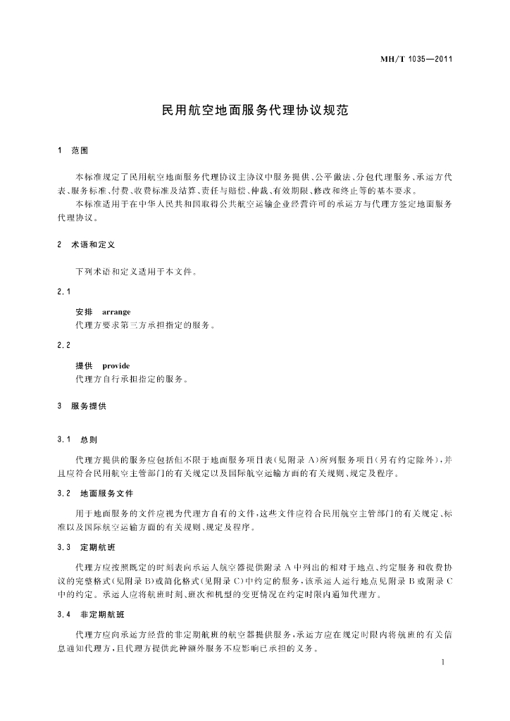 MH/T 1035-2011 民用航空地面服务代理协议规范