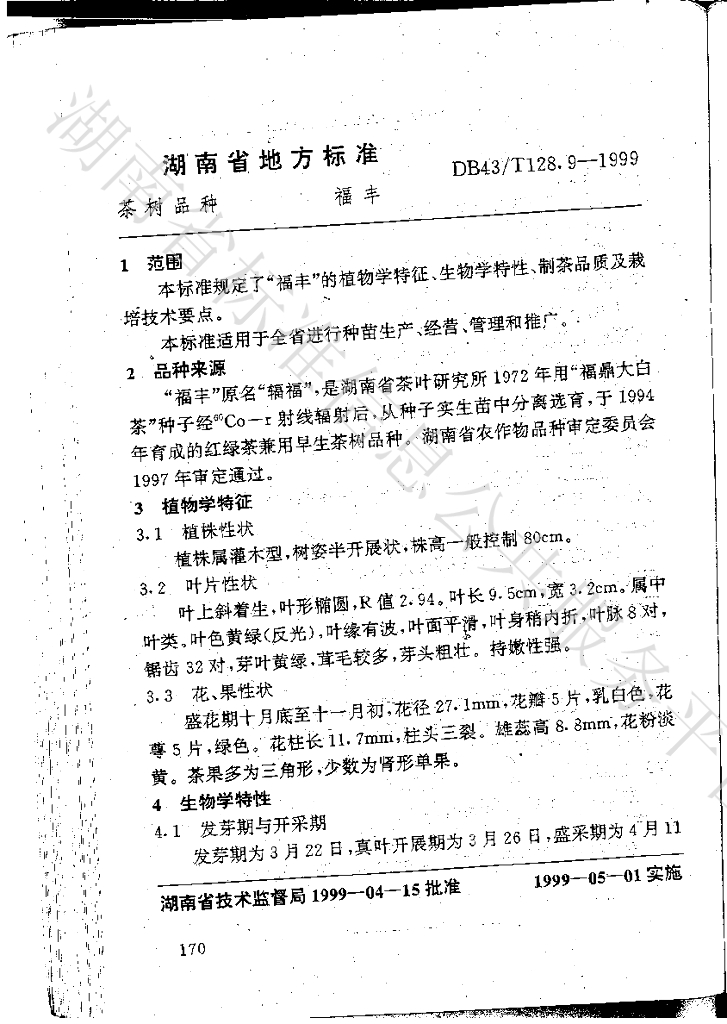 DB43/T 128.9-1999 茶树品种 福丰