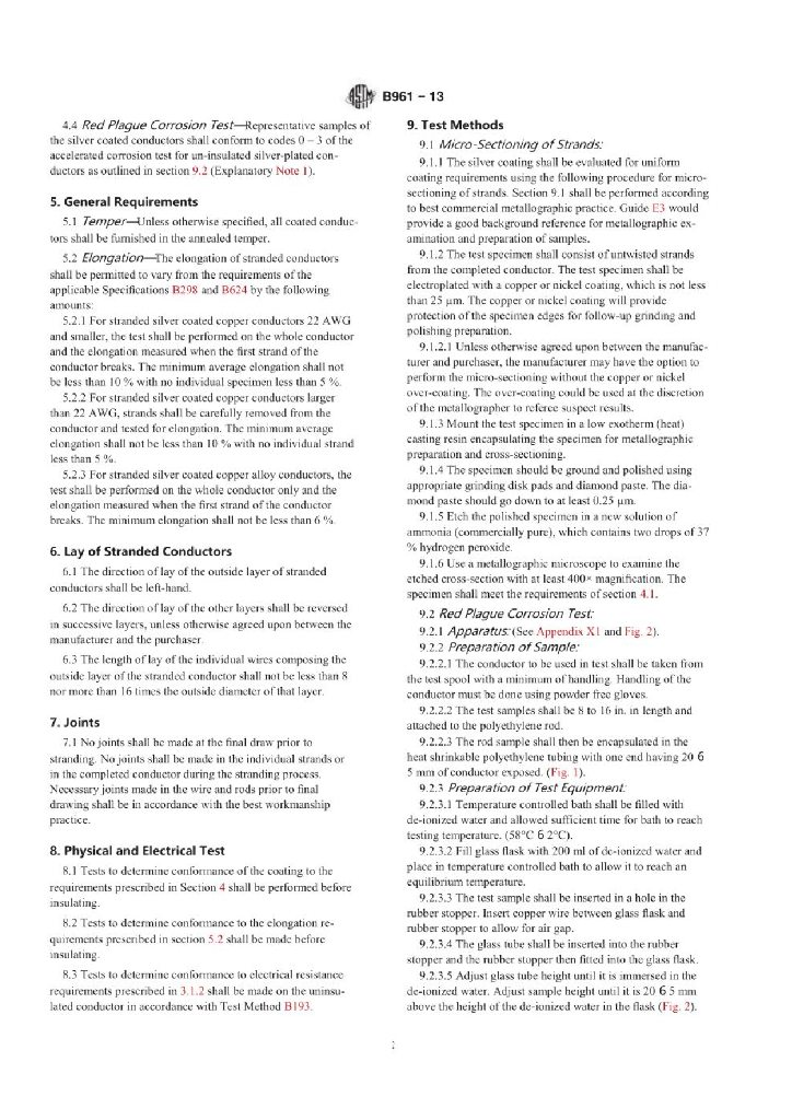 ASTM B961-13 用于电子空间应用的镀银铜和铜合金绞合导体