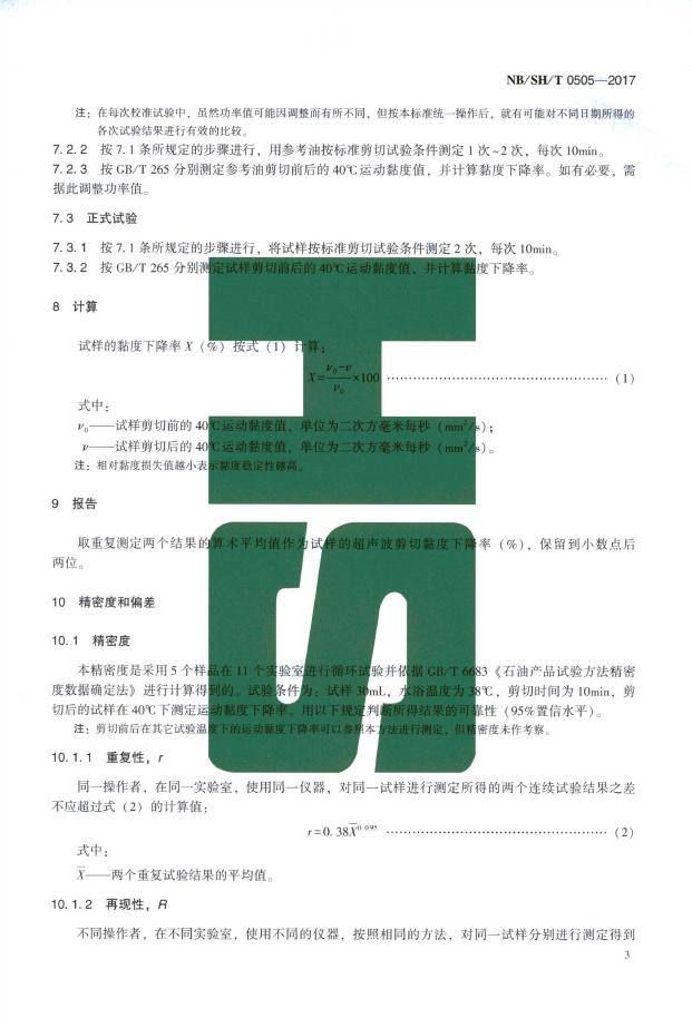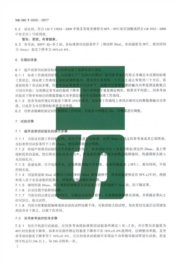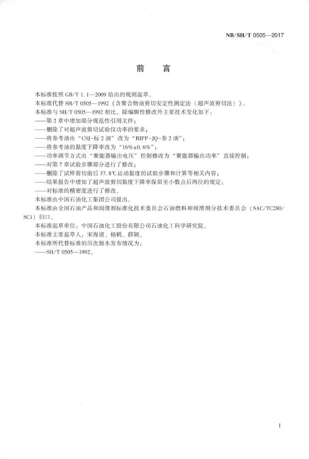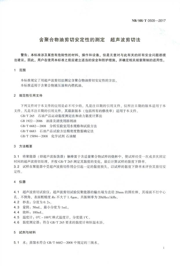 SH/T 0505-2017 含聚合物油剪切安定性的测定 超声波剪切法