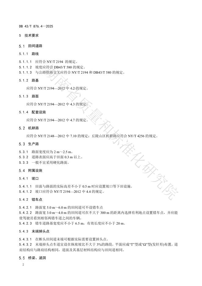 DB43/T 876.4-2025 高标准农田建设 第4部分:田间道路