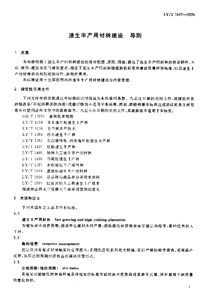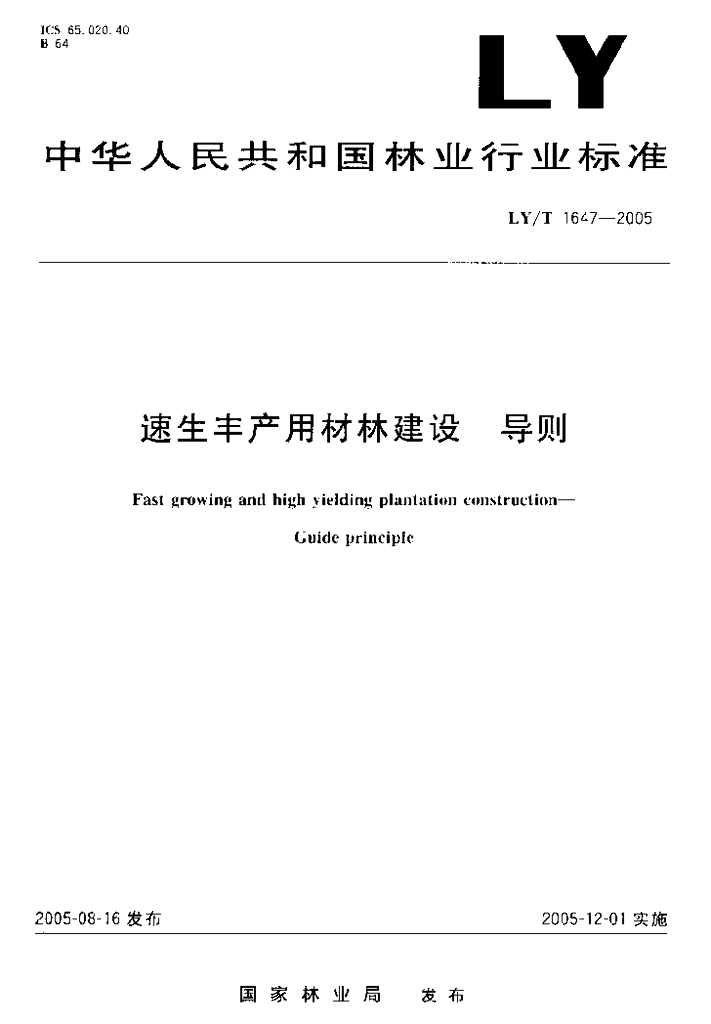 LY/T 1647-2005 速生丰产用材林建设 导则