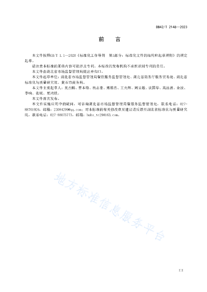 湖北省市场监督管理局餐饮服务监督管理处、湖北省商务厅服务贸易处、湖北省标准化与质量研究院、黄石市商务局