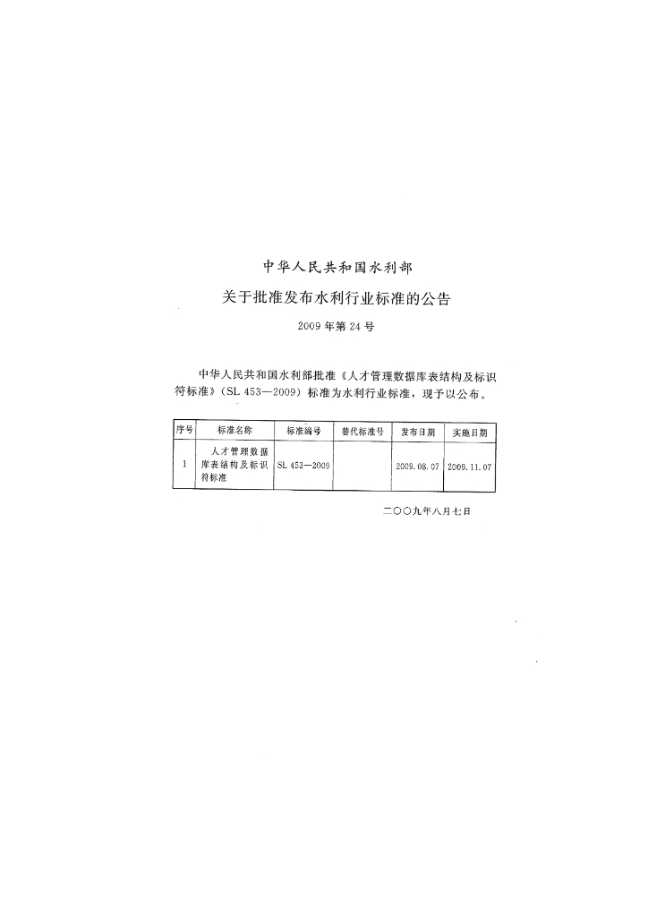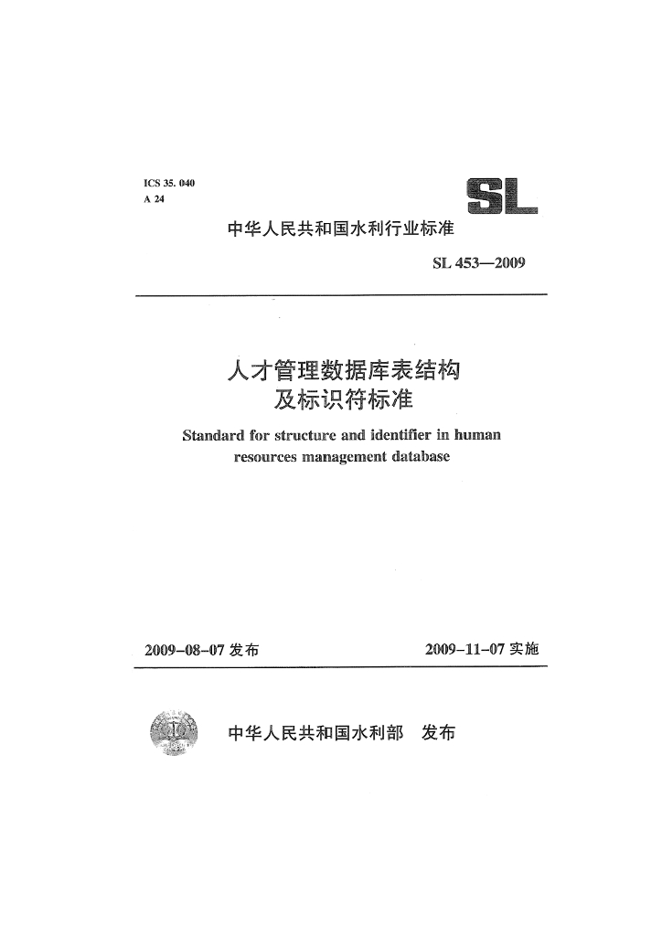 SL 453-2009 人才管理数据库表结构及标识符标准