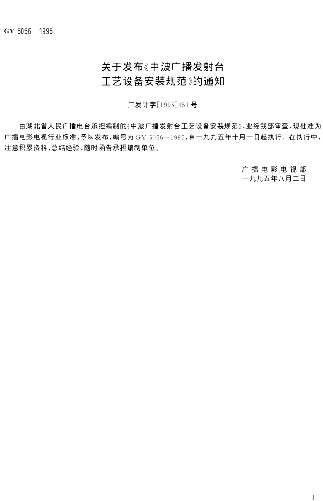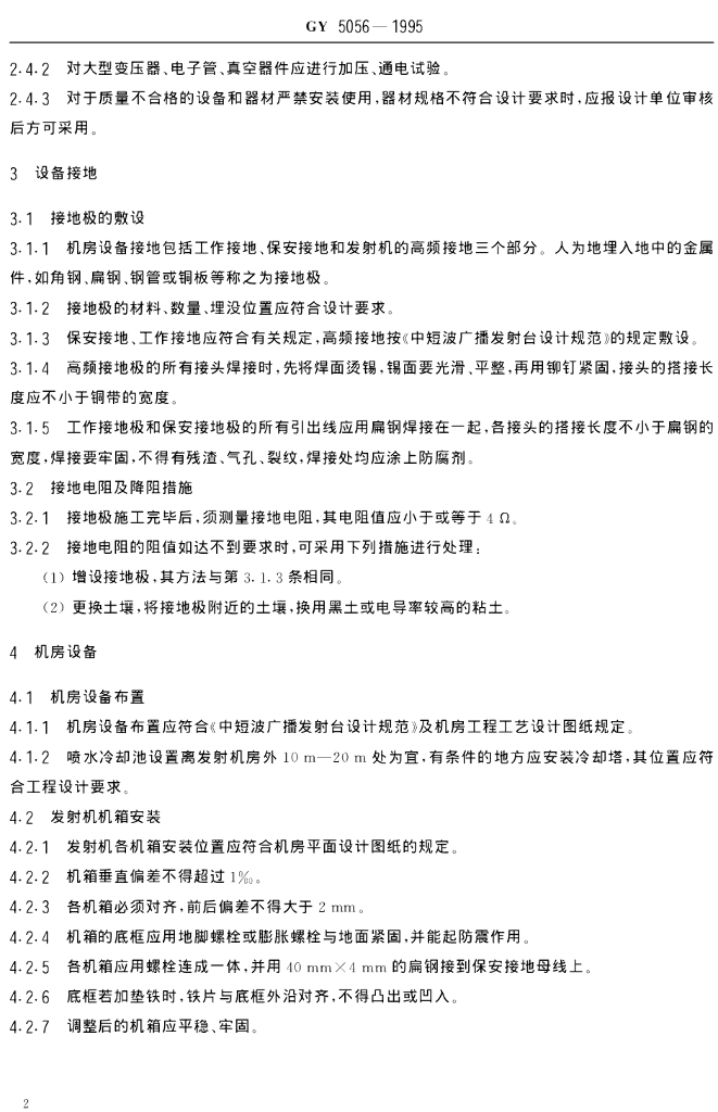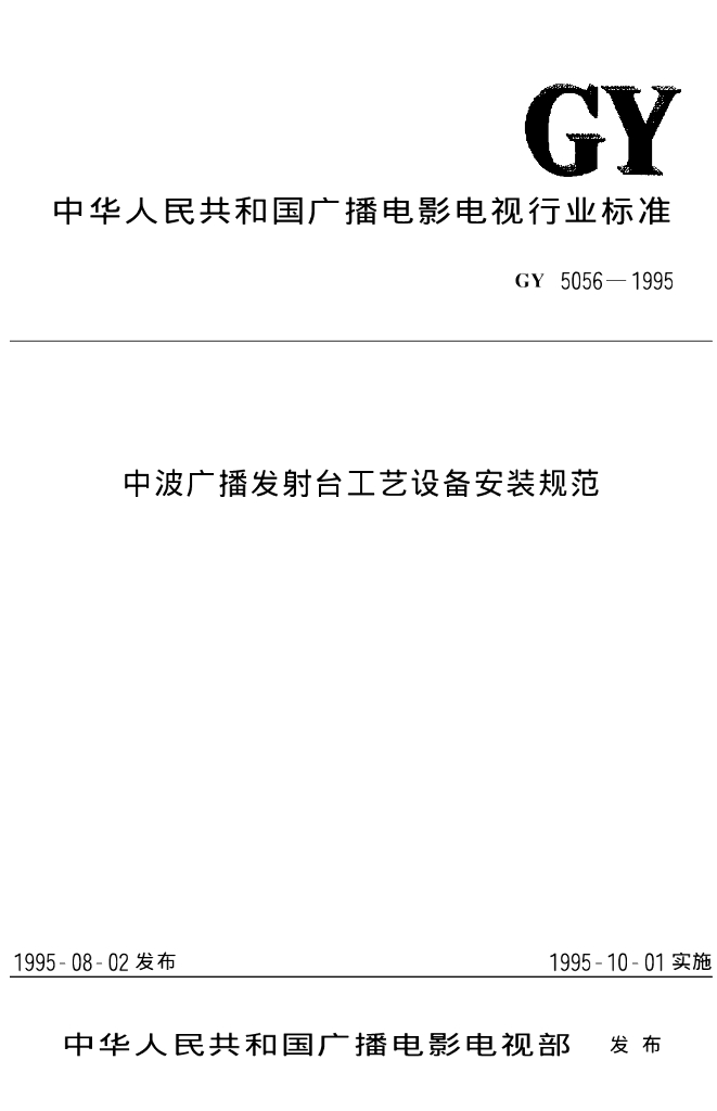 GY 5056-1995 中波广播发射台工艺设备安装规范
