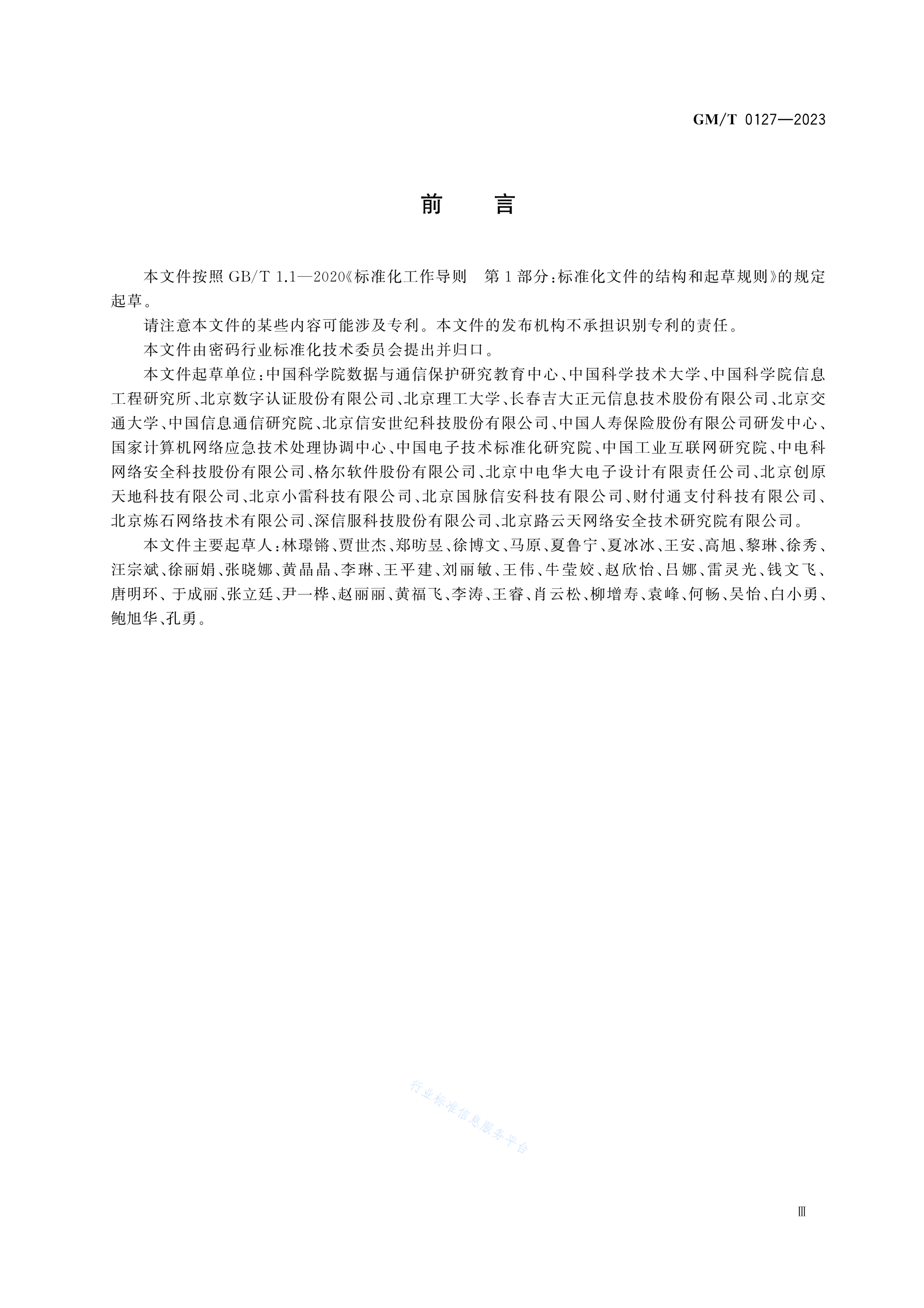 中国科学院数据与通信保护研究教育中心、中国科学技术大学、中国科学院信息工程研究所、北京数字认证股份有限公司、北京理工大学、长春吉大正元信息技术股份有限公司、北京交通大学、中国信息通信研究院、北京信安世纪科技股份有限公司、中国人寿保险股份有限公司研发中心、国家计算机网络应急技术处理协调中心、中国电子技术标准化研究院、中国工业互联网研究院、中电科网络安全科技股份有限公司、格尔软件股份有限公司、北京中电华大电子设计有限责任公司、北京创原天地科技有限公司、北京小雷科技有限公司、北京国脉信安科技有限公司、财付通支付