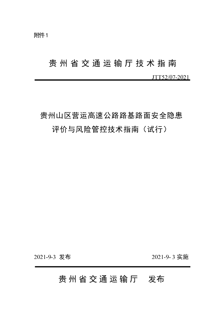 JTT 52/07-2021 贵州山区营运高速公路路基路面安全隐患评价与风险管控技术指南(试行)