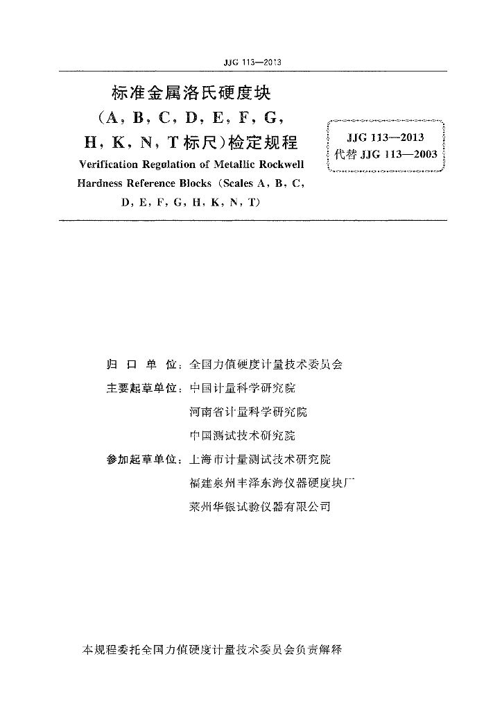 - 代替标准:JJG 113-2003