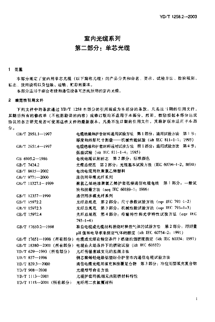 YD/T 1258.2-2003 室内光缆系列 第二部分:单芯光缆