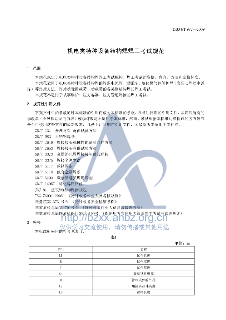 DB34/T 987-2009 机电类特种设备结构焊接工考试规范