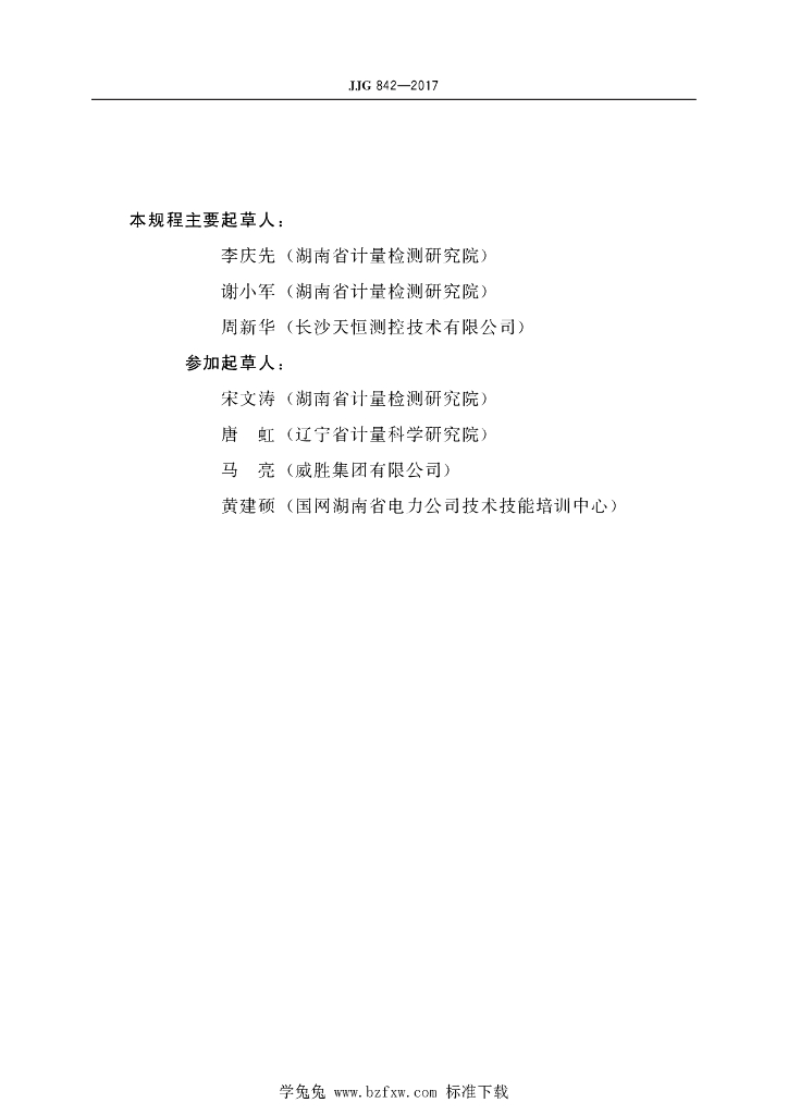 李庆先(湖南省计量检测研究院)、谢小军(湖南省计量检测研究院)、周新华(长沙天恒测控技术有限公司)、宋文涛(湖南省计量检测研究院)、唐虹(辽宁省计量科学研究院)、马亮(威胜集团有限公司)、黄建硕(国网湖南省电力公司技术技能培训中心)
