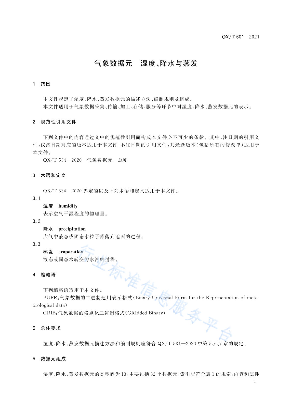QX/T 601-2021 气象数据元 湿度、降水与蒸发