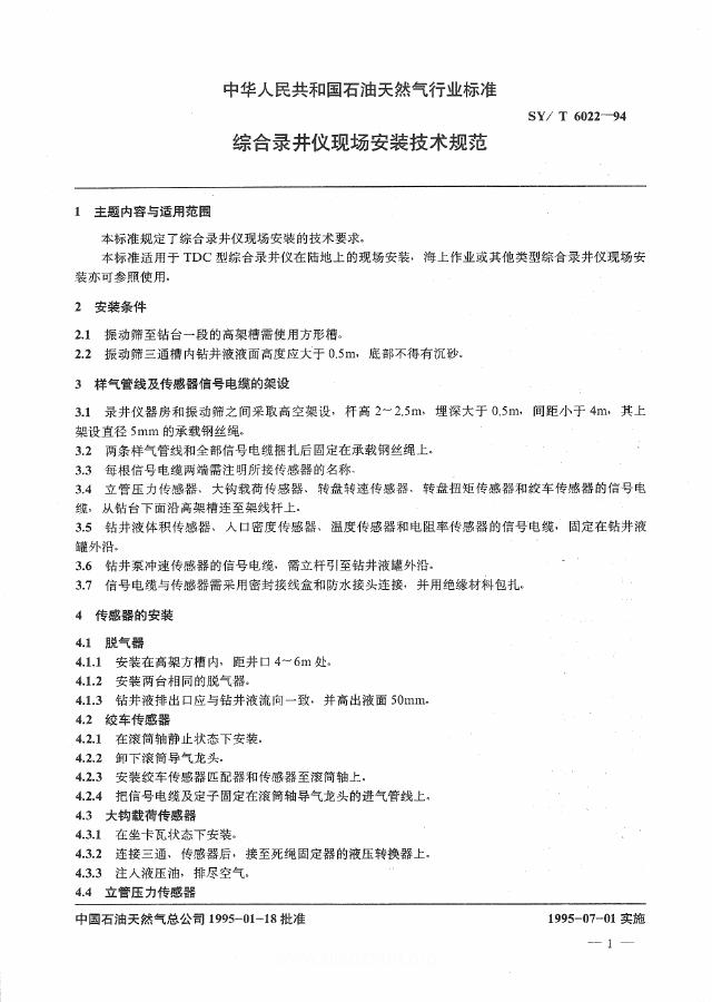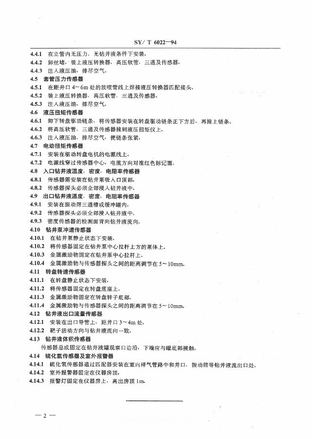 SY/T 6022-1994 综合录井仪现场安装技术规范