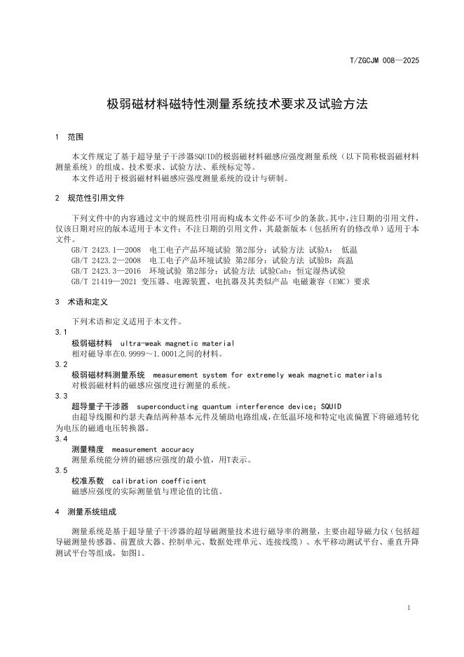 T/ZGCJM 008-2025 极弱磁材料磁特性测量系统技术要求及试验方法
