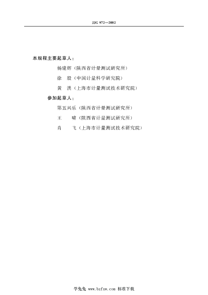 杨建辉(陕西省计量测试研究所)、徐殷(中国计量科学研究院)、黄洪(上海市计量测试技术研究院)、第五兴乐(陕西省计量测试研究所)、王啸(陕西省计量测试研究所)、肖飞(上海市计量测试技术研究院)