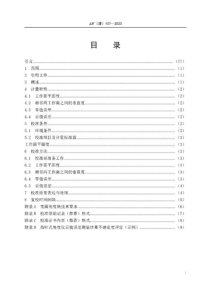 JJF(津)107-2023 指针式角度仪校准规范