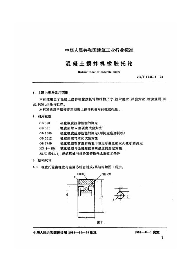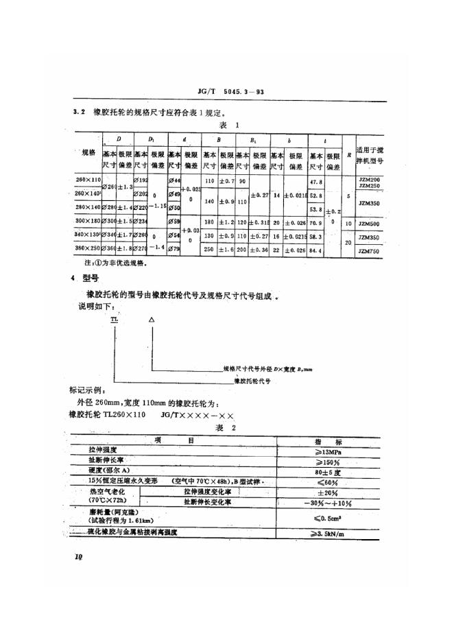 JG/T 5045.3-1993 混凝土搅拌橡胶托轮