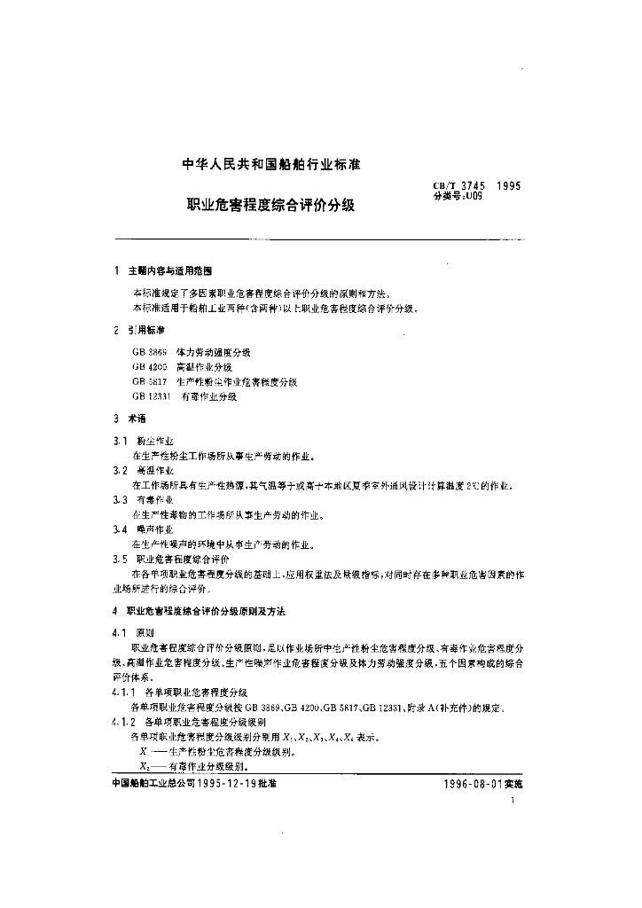 CB/T 3745-1995 职业危害程度综合评价分级