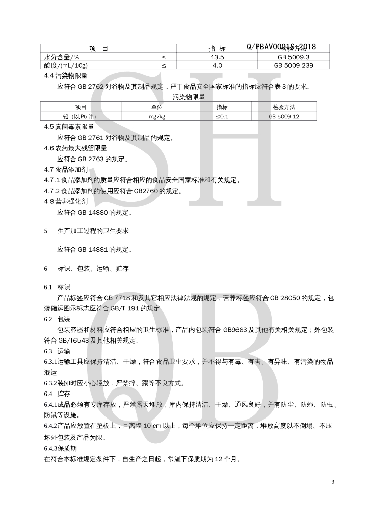 Q/PBAV 0001S-2018 花色挂面