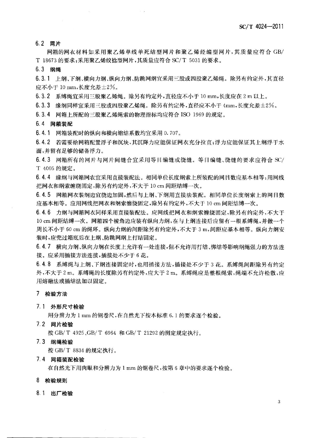 SC/T 4024-2011 浮绳式网箱