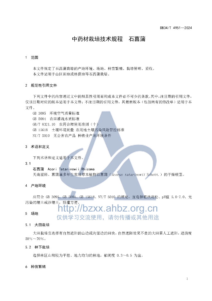 DB34/T 4951-2024 中药材栽培技术规程 石菖蒲