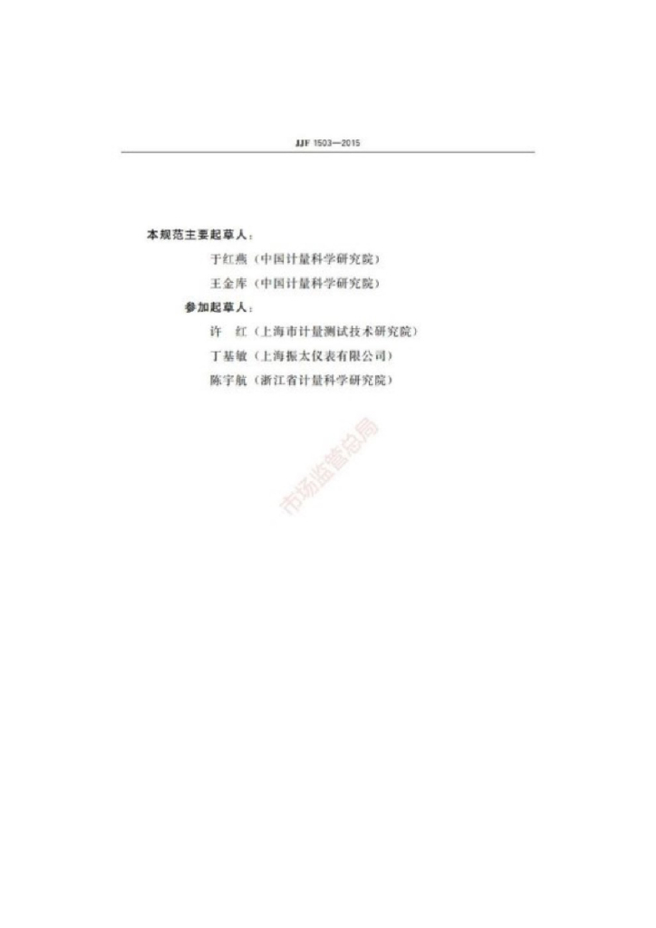 于红燕(中国计量科学研究院)、王金库(中国计量科学研究院)、许红(上海市计量测试技术研究院)、丁基敏(上海振太仪表有限公司)、陈宇航(浙江省计量科学研究院)