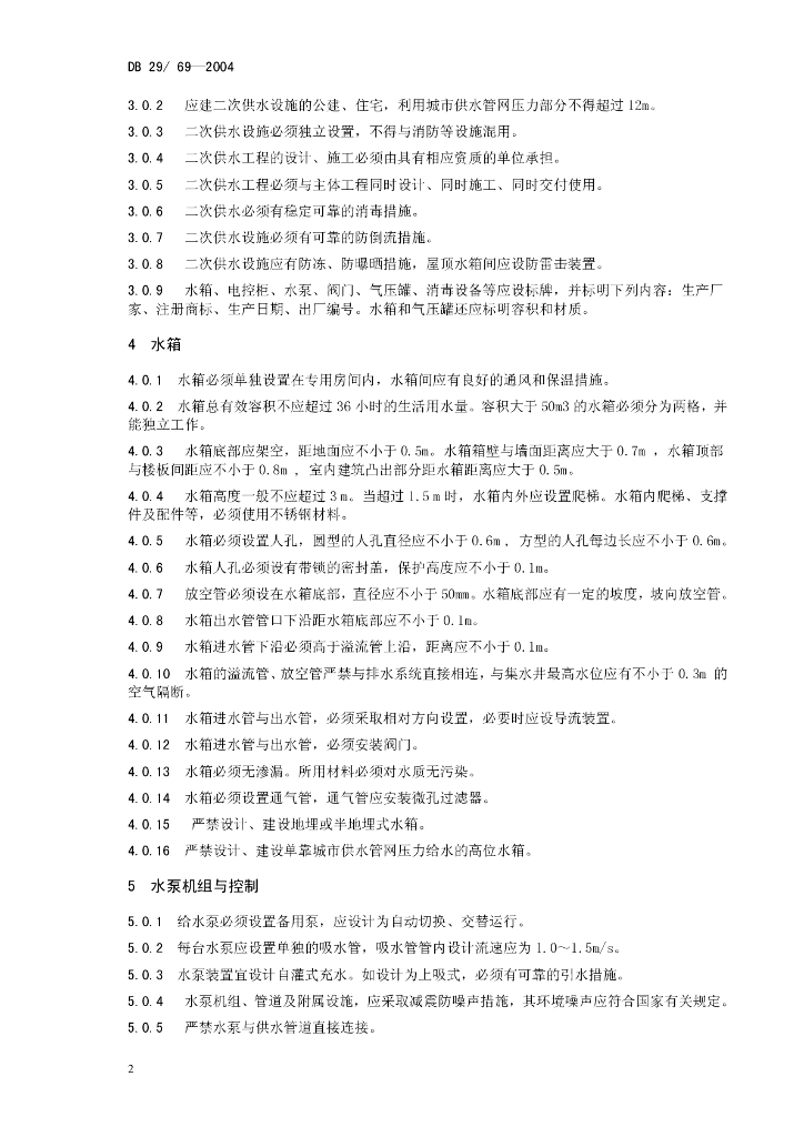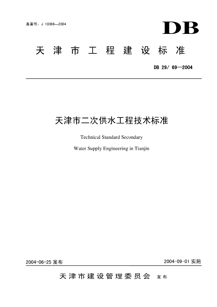 DB 29-69-2004 天津市二次供水工程技术标准