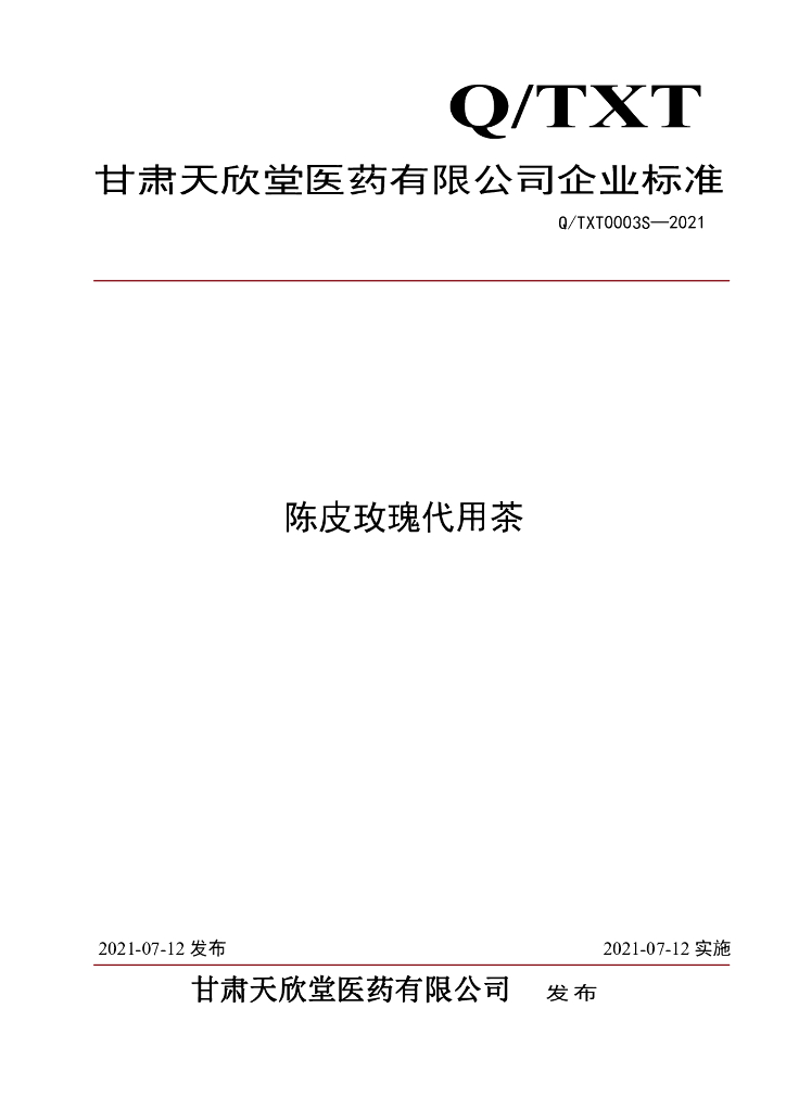 Q/TXT 0003S-2021 陈皮玫瑰代用茶