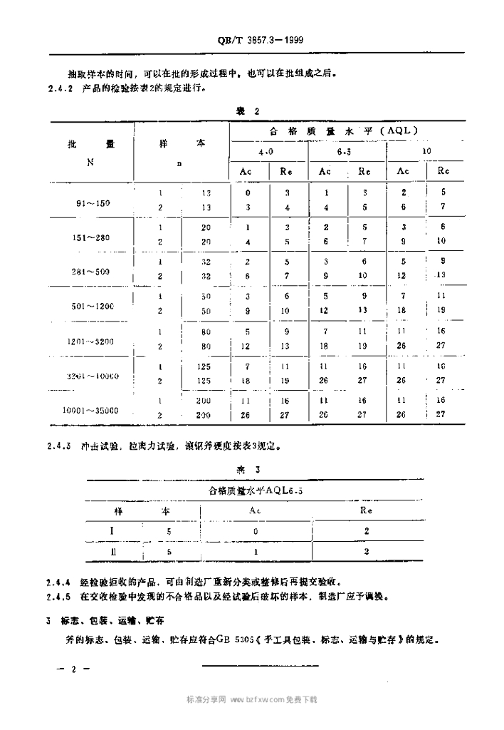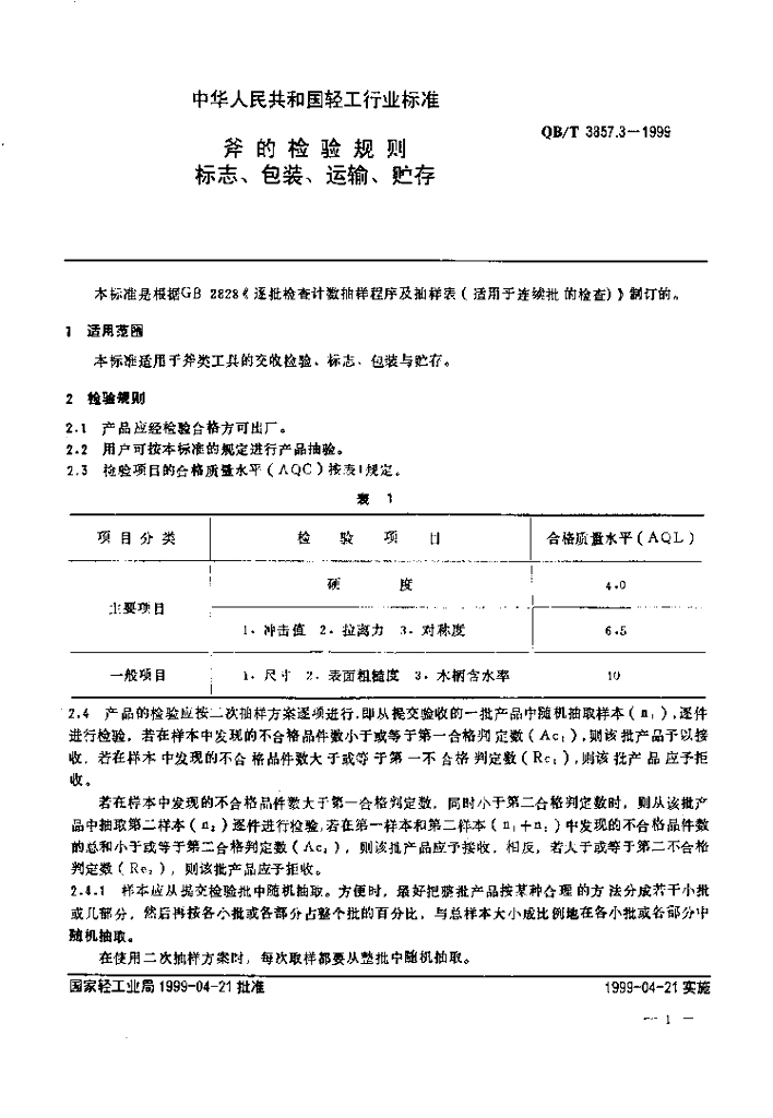 QB/T 3857.3-1999 斧的检验规则