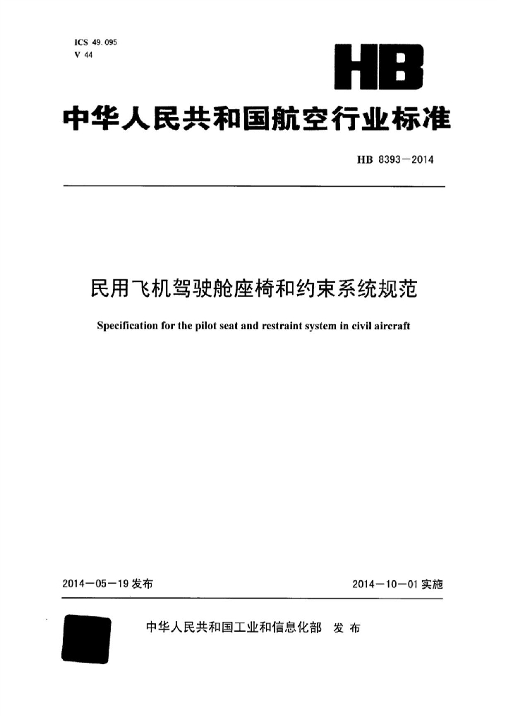 HB 8393-2014 民用飞机驾驶舱座椅和约束系统规范