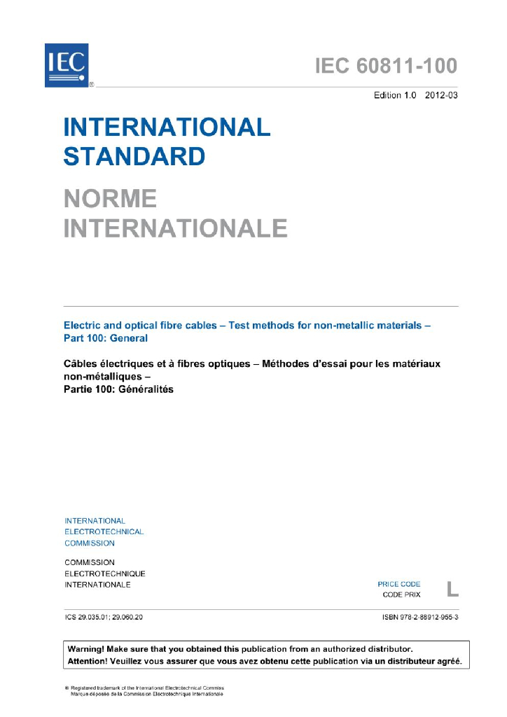IEC 60811-100-2012 电缆和光缆--非金属材料的试验方法--第100部分:总则