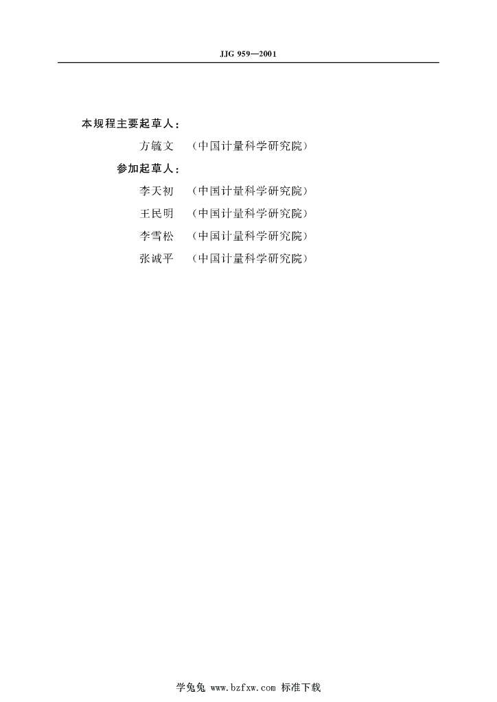 方毓文(中国计量科学研究院)、李天初(中国计量科学研究院)、王民明(中国计量科学研究院)、李雪松(中国计量科学研究院)、张诚平(中国计量科学研究院)