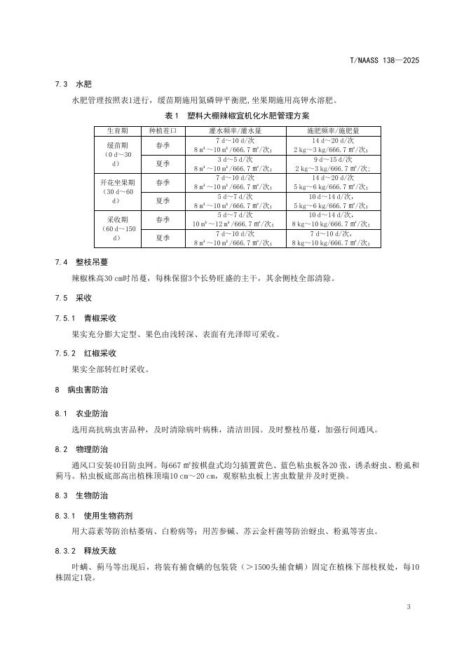 T/NAASS 138-2025 塑料大棚辣椒宜机化栽培技术规程